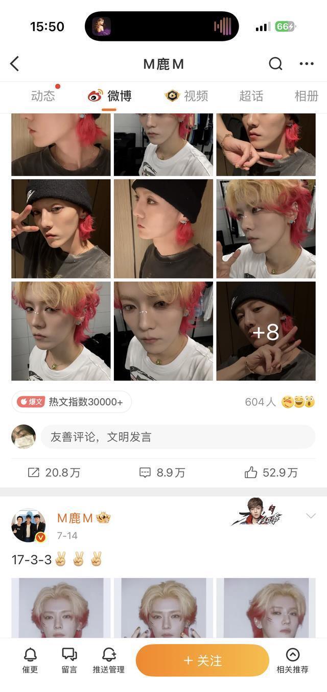 她知道,她全知道,但她还是发了。 这不是营业,这是宣战。 对谁?对那段早就扭成一团死结的关系,对那种“我不说你别问”的死气沉沉,对过去那个永远低头做人、替男方挡枪的自己。 她累了,开始不演了。 鹿晗的回应:20张自拍,谁都不许忘了我 而另一边,鹿晗的反应也快得惊人。吻戏刚热起来没多久,他突然发了20张自拍,清一色帅照,角度、光线、表情管理都在线,像极了一个在说:“我还在这儿呢,别把我当背景板。”